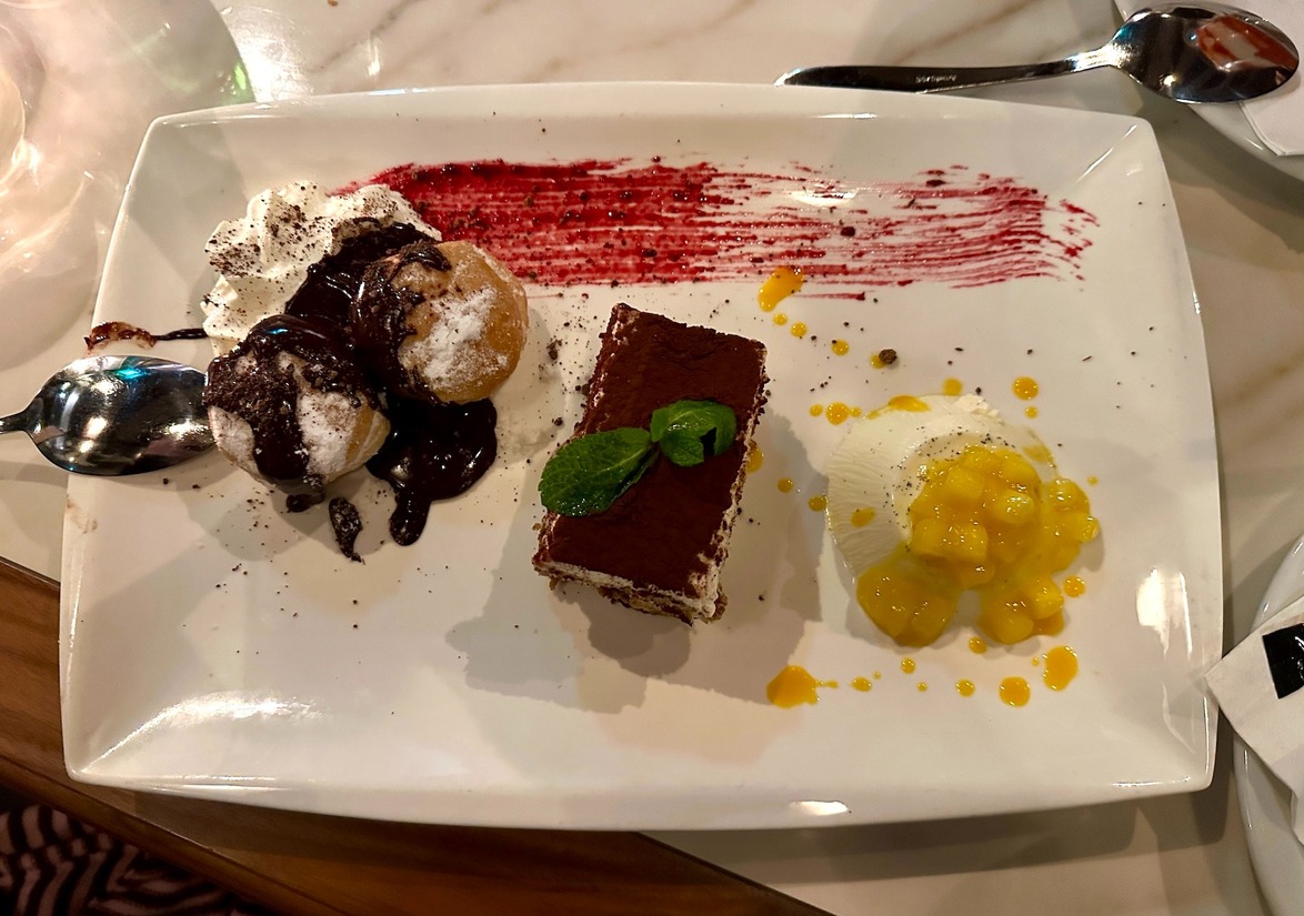 Ook de kaart voor de desserts is erg uitgebreid, zeker voor een Italiaan. Het dessert misto della casa raden wij iedereen aan. Een romige panna cotta met zomerfruit, romige profiteroles met chocoladesaus en ook een zeer romige tiramisu met amaretto maken wat ons betreft een ideaal trio.
