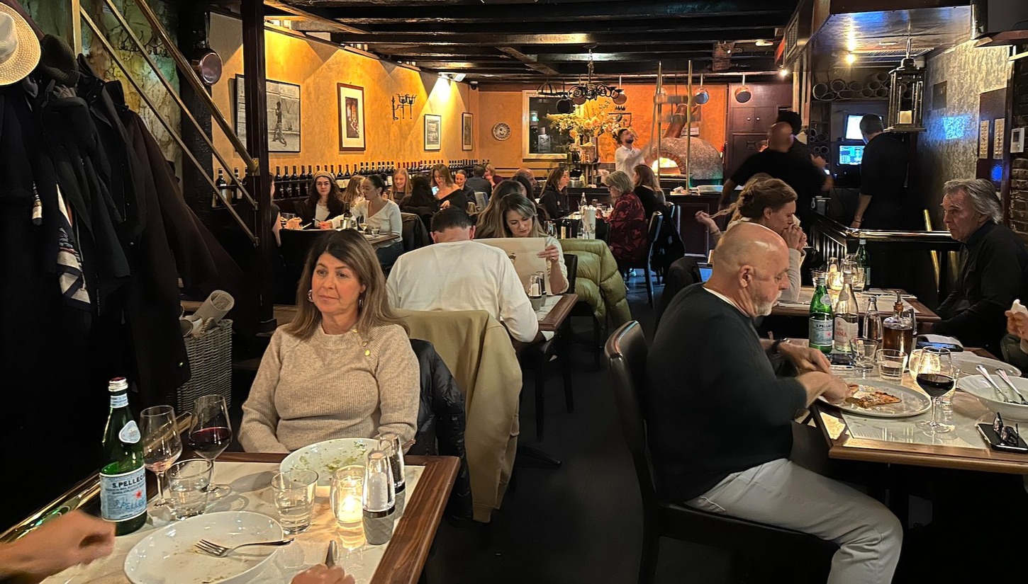 Zodra wij de deur openen van het restaurant, vernoemd naar het beeldhouwwerk van Michelangelo, worden onze zintuigen geprikkeld. De geur van houtovenpizza’s, het geluid van rumoerige aanwezigen en de aanblik van zwart-wit foto’s van Italiaanse tradities komen ons tegemoet.