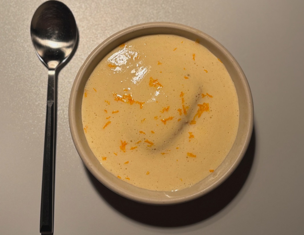 Tot slot kregen we een dessert dat wederom het idee van rijkelijke happen naar voren bracht. Onder een luchtig deken van sabayon, cognac en sinaasappel rasp, lag een sponzige cake met friszure appels. Als verrassing zat hier een walnoot praliné bij. Deze zorgde voor een zoutje waardoor het dessert niet te zoet was. Met alle smaken op de lepel, was het samen een lichte maar feestelijke afsluiter van het diner.