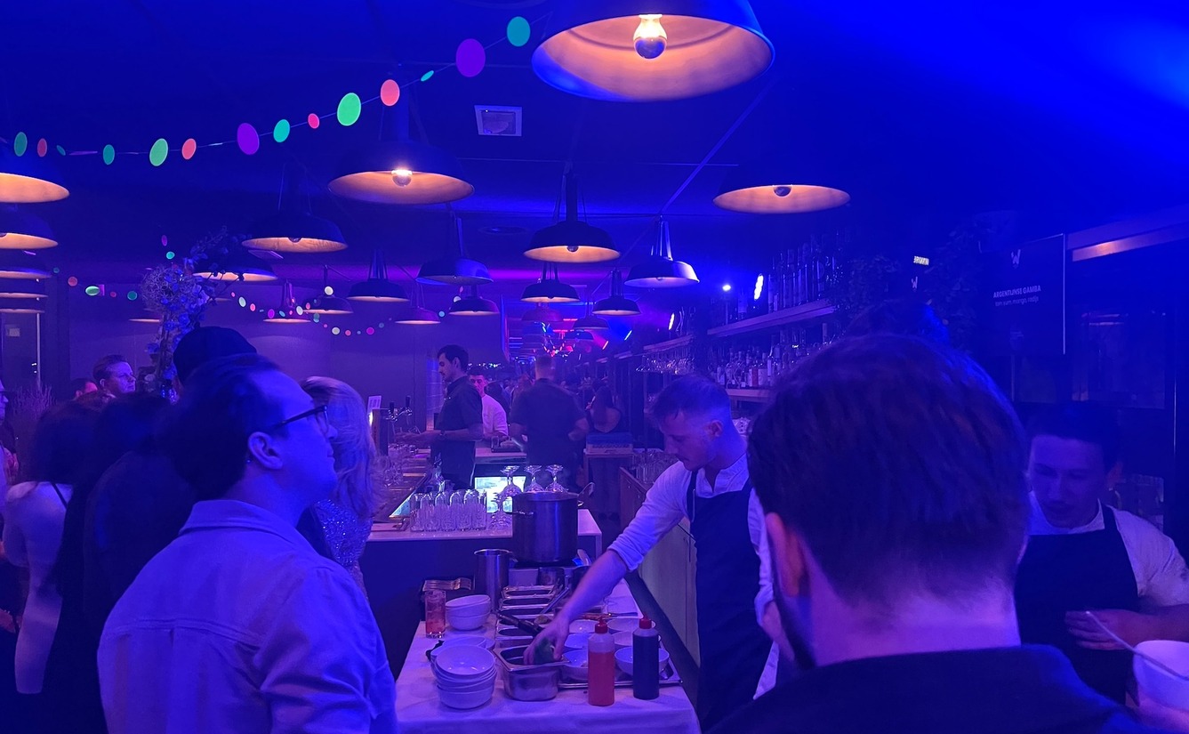 Waar Wolf Atelier doorgaans bekend staat als strak ingericht, fine-dining restaurant was de monumentale spoorbrug voor een avond omgetoverd tot één groot feest. Tijdens de Culinary Full Moon Party is de restaurant ruimte dan ook vrijgemaakt om langs verschillende eet-, drink- en cocktailstands te flaneren, met een live DJ die er zelfs voor zorgt dat dit dansend gebeurt. De kleurrijke neon versiering, flikkerende lampjes, een vuurspuwende act en lichtgevende shutter shades maken het plaatje compleet.