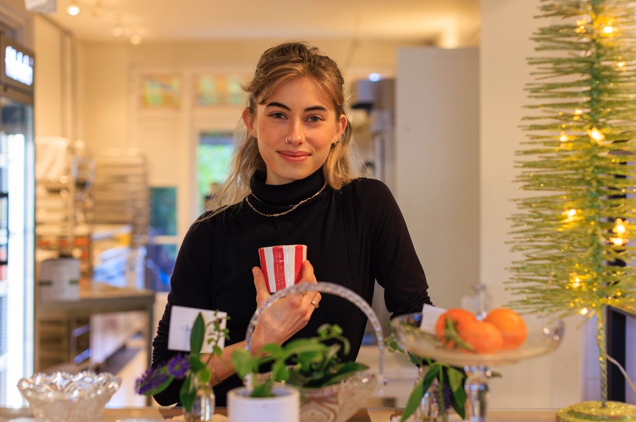 “Het was geweldig, het was fijn om een plek te hebben waar ik tot rust kon komen en de klanten kon zien, maar uiteindelijk merkte ik dat het lastig werd dat de plek niet helemaal van mij was.” Half november opent ze dus helemaal haar eigen zaak. “High end koffie moet ik nog leren zetten”, lacht ze.