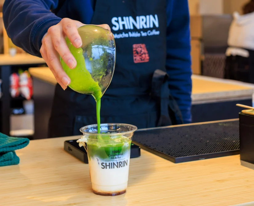 Want er liggen fake matcha’s op de loer, waarschuwt Chao. Hij weet waar hij over praat, sinds 2022 runt hij een matcha groothandel en reist hij regelmatig naar Japanse regio’s als Uji en Kagoshima. Jaarlijks importeert hij tienduizenden kilo’s matcha naar Europa. In die wereld kwam ook het idee voor een eigen zaak naar boven: een plek waar hij de eindgebruiker ziet genieten van het product waar hij zelf zo gek op is.