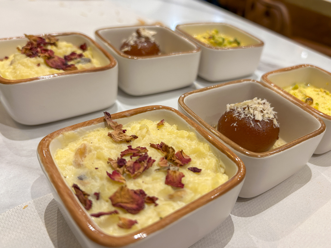 De desserts vinden we lastig. Dat ligt niet aan Anaya, dat ligt aan ons. We delen Ras Malai, zachte kaas-dumplings in romige melk met noten en kardamom en Gulab Jamun, dumplings op melkbasis in een geurende suikersiroop.