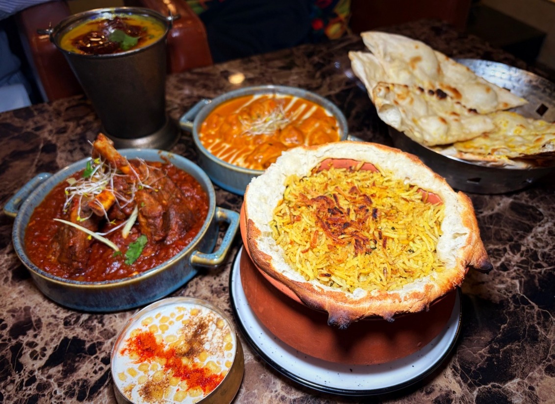 Het wordt geserveerd met raita, een verfrissende yoghurtsaus die contrasteert met warme kruiden. En een leuke touch, je mag de kleipot mee naar huis nemen.