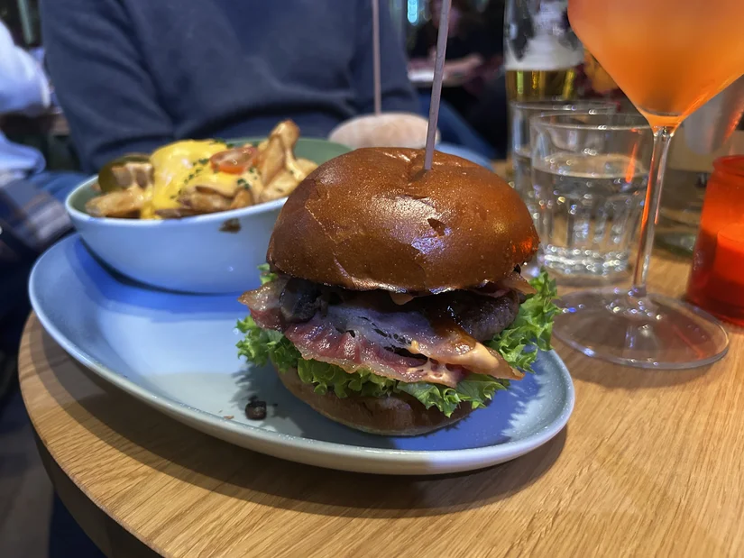 De keuze valt op de peach & passionfruit spritz, geserveerd met kleine stukjes drakenfruit. De prosecco vormt de frisse basis, terwijl perzik en passievrucht zorgen voor een fruitige balans. Een toegankelijke spritz passend bij de stevige smaken van de burgers.