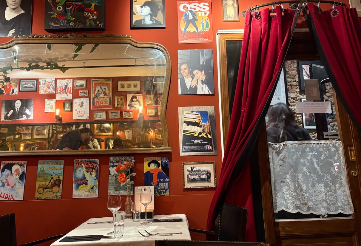 Een lange spiegelwand, schilderijtjes aan de muur, ronde tafeltjes die nét iets te dicht op elkaar staan (precies zoals het hoort) en een warm onthaal van de bediening: alles ademt Franse gezelligheid.