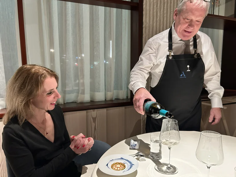Ja, er hangt een prijskaartje aan een avond Azurite, maar er wordt dan ook nergens op bezuinigd. Niet op de ingrediënten (kaviaar, paling, tonijn, truffel, tarbot, langoustine, saffraan), niet op de kookkunsten, niet op de bediening, de aandacht, de wijn, de warmte en de beleving. Reken op een ouderwets avondvullend programma met het beste van het beste. Maak het vooral zo gek als je zelf wil - want dat kan daar.