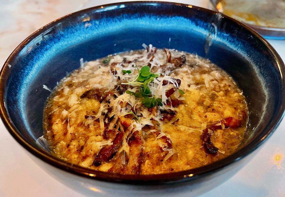 Ondanks het frequent wisselende menu staat er sinds de opening van The Embassy of Food standaard een risotto op de kaart. Die vertegenwoordigt de Italiaanse roots van Valentino en wij kunnen alleen maar zeggen dat dit vooral moet worden behouden. De Italiaanse truffelrisotto wint misschien niet de schoonheidsprijs, maar don’t judge a book by its cover, want we genieten enorm van de aardse smaken, met als tegenhangers scherpe parmezaanse kaas en zachte oesterzwammen.
