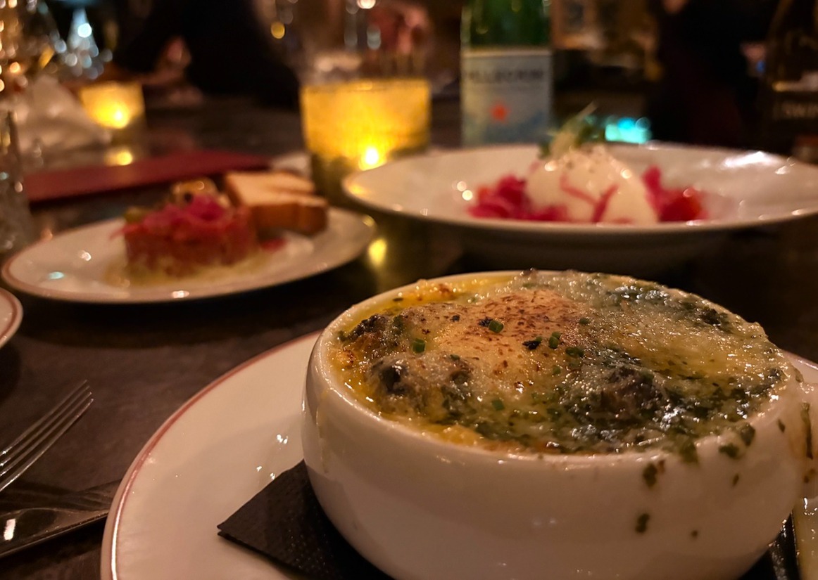 De steak tartaar wordt klassiek bereid: puur, stevig en vol smaak, met worcestersaus en uiteraard een rauw eitje bovenop. De escargots worden geserveerd in knoflookboter met een korstje van Gruyère dat nét dat extra laagje romigheid en hartigheid toevoegt. De smaken sluiten perfect op elkaar aan.
