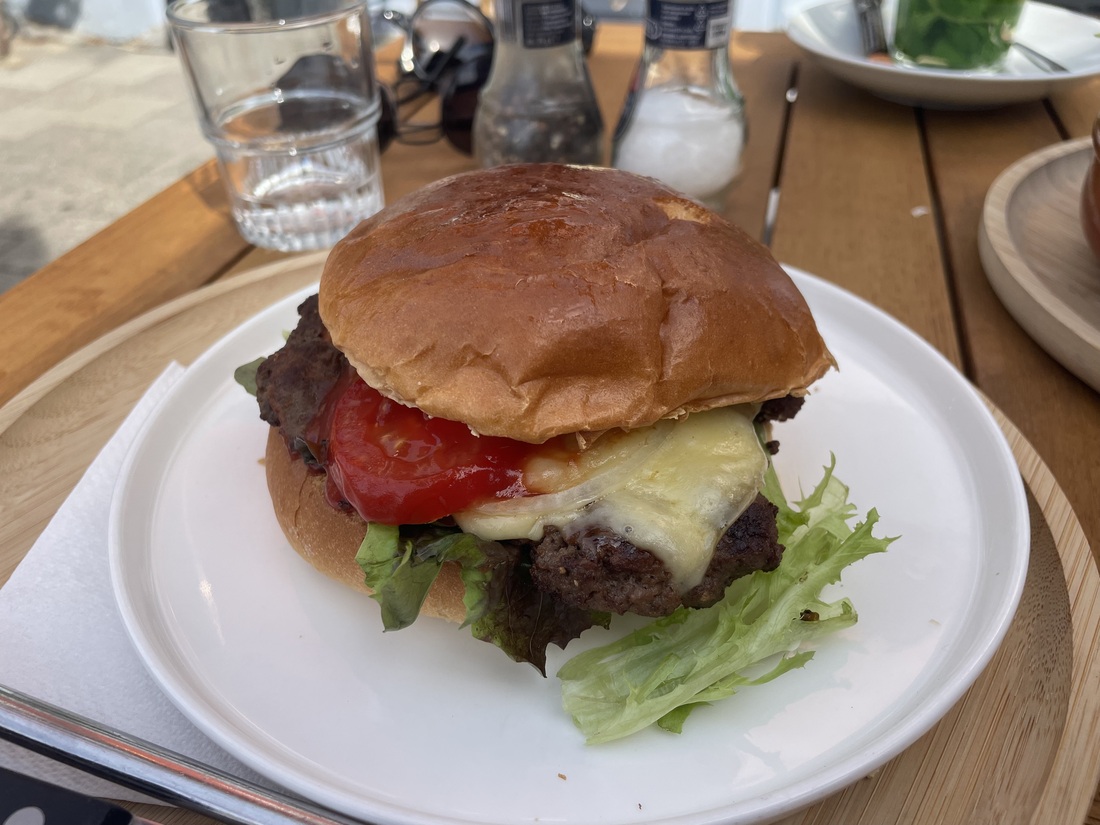 Het is inderdaad een heel eigen versie van de hamburger. Qua presentatie zal die het niet winnen, maar alles bij dit stoere burgermannetje heeft smaak. Zelfs het brood, met zijn licht vanilleachtige toon. Je proeft het vlees, je proeft de tomaat en je proeft de kaas. Deze cheeseburger heeft smoel en heeft de dooreetfactor.