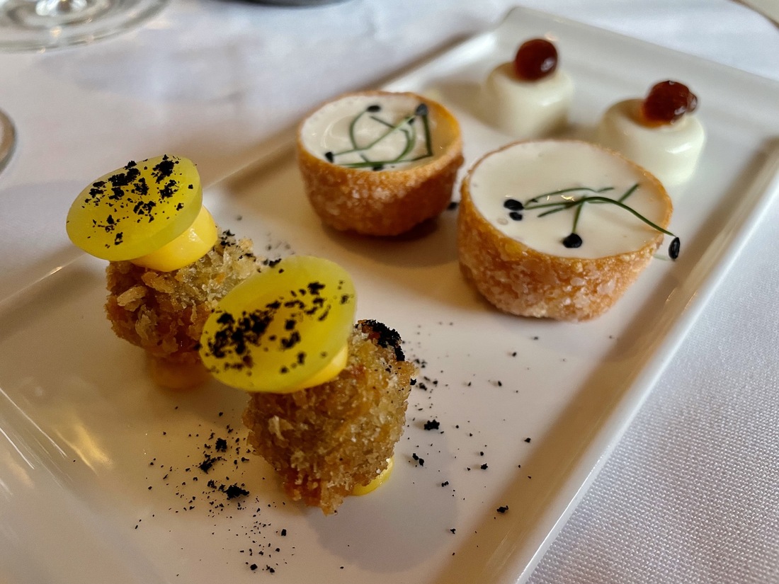 Bij alle gerechten, vanaf de amuses tot het dessert, zie je veel handelingen op het bord. Slechts een enkele keer wordt het te veel. Zoals bij de kwartel, waar de sesamcracker overheerst.