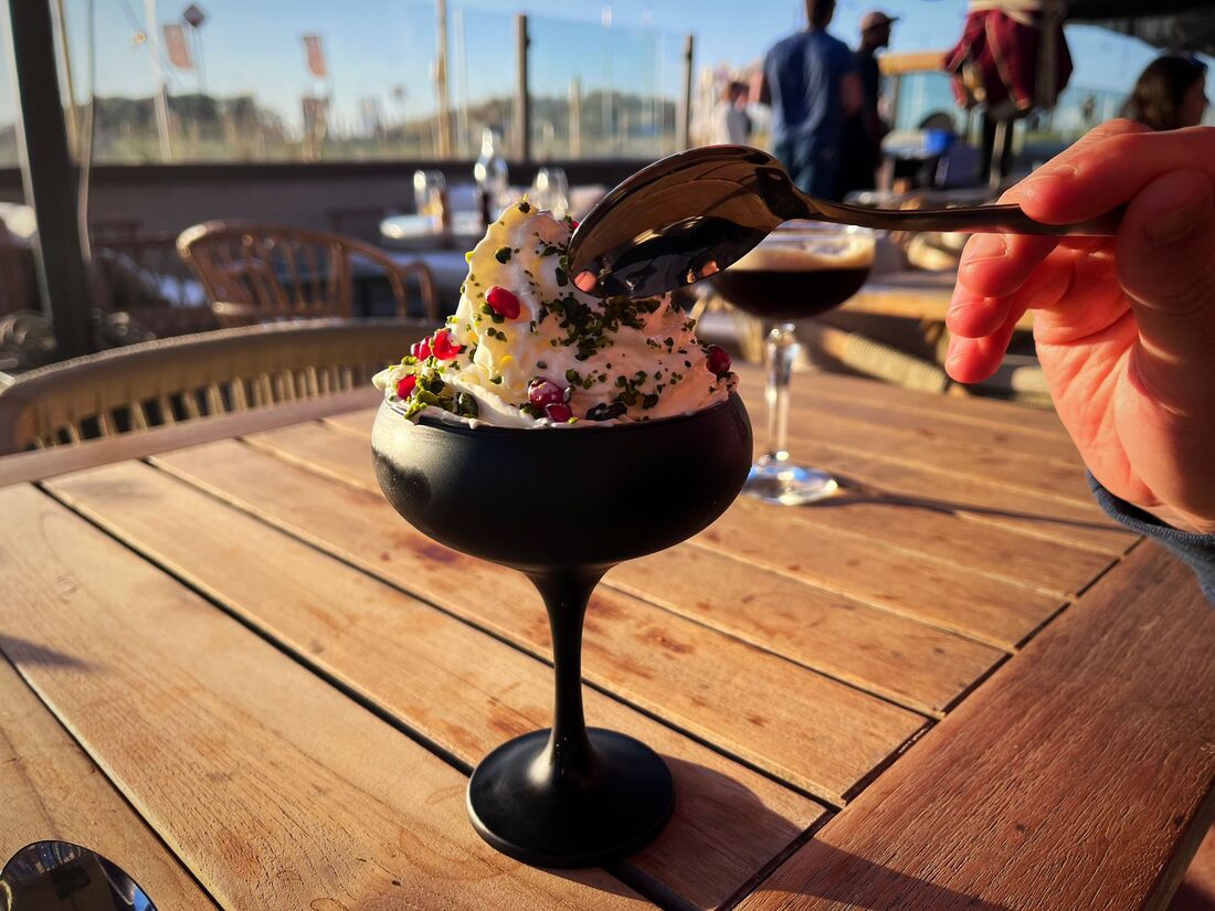De avond sloten we af met espresso martini’s en een gedeelde haytaliyah (een Libanese melkpudding) geserveerd met ijs, slagroom, granaatappel en pistache. Een toetje dat zacht en romig begint, maar eindigt met een verrassende crunch van de granaatappel en pistache. Een klein feestje op een lepel.