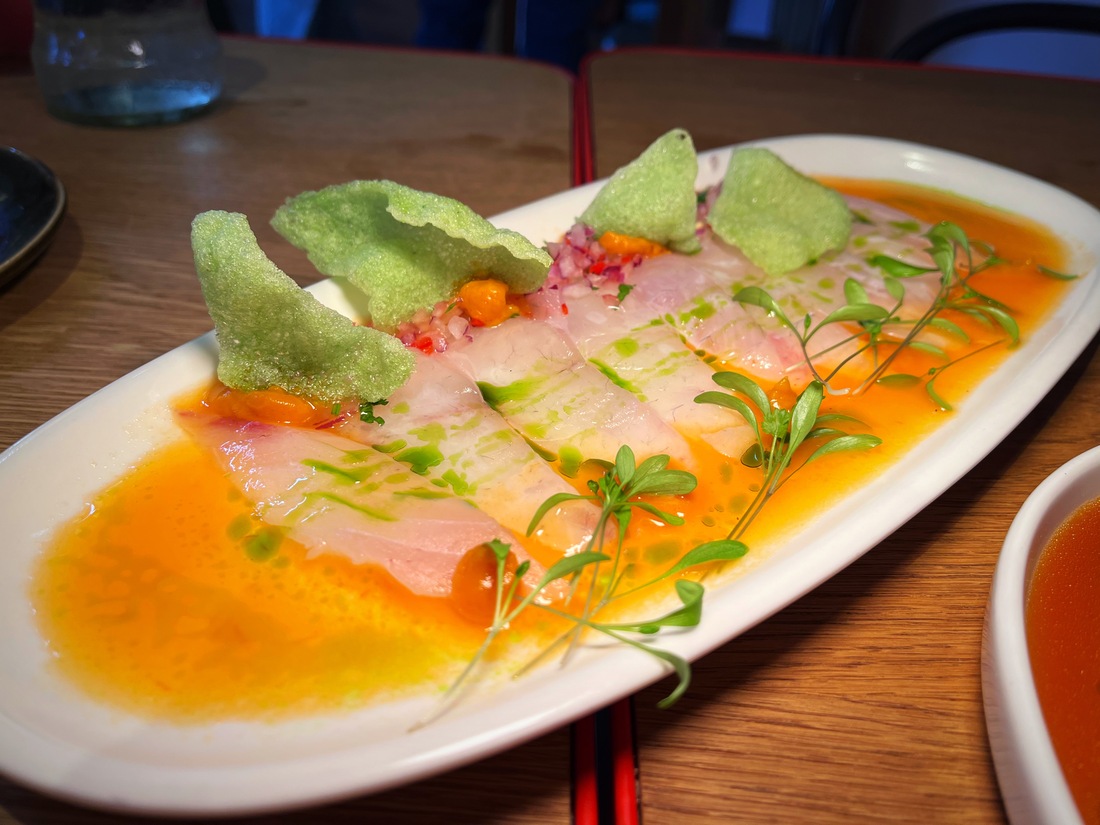 De tiradito ceviche is minstens zo indrukwekkend. Gemaakt van corvina (witvis), in een rocoto leche de tigre met zoete aardappelpuree, tapioca crunch, rode ui en koriander. Hoewel het op de kaart als ‘ceviche’ staat, zit er een subtiel maar belangrijk verschil tussen klassieke ceviche en tiradito. Waar ceviche doorgaans bestaat uit in blokjes gesneden vis wordt tiradito geserveerd in dunne plakjes, vergelijkbaar met sashimi.