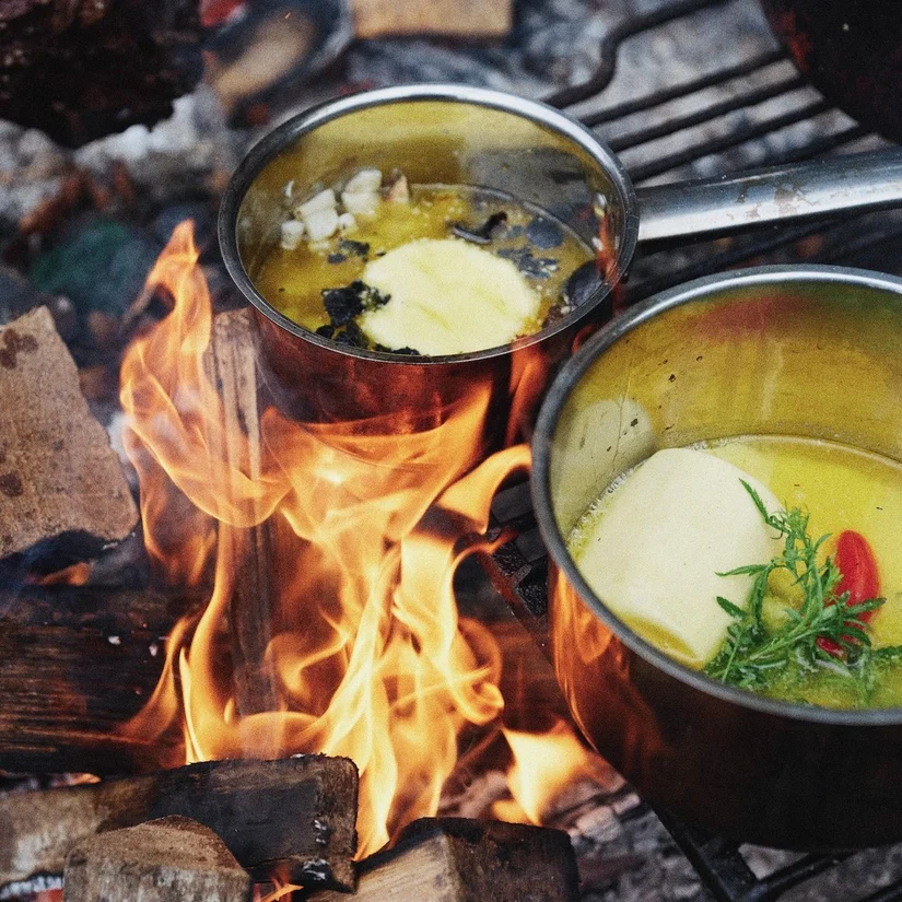 "Ik noem er een paar. Bij dirty cooking of caveman cooking bereid je voedsel direct, zonder pan of rooster, op gloeiende kolen; voor een snelle sear. Zoals diamanthaas of coquilles in de schelp, gemarineerd met citrus, chili en koriander. Er is een Colombiaanse techniek: lomo al trappo. Diamanthaas wordt hierbij ingepakt in kaasdoek, omwikkeld door slagerstouw en overgoten met rode wijn. Het kaasdoek verbrandt op de gloeiende kooltjes maar het vlees blijft nat en krijgt het parfum van die wijn."
