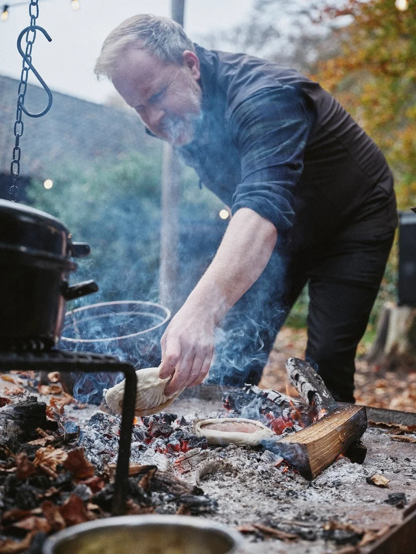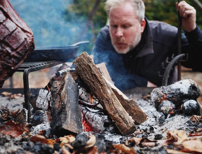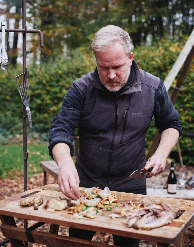 Wandelend over het landgoed waar hij nu woont en werkt: "Een vrije manier van koken spreekt me heel erg aan. Barbecueën is een andere bereiding met andere smaken en zorgt voor ontspanning. Tenminste, als het je lukt om geen haast te hebben. 'Trek er tijd voor uit', zeg ik altijd. Koop lekkere producten, verdiep je in de techniek en doe niet te ingewikkeld. Een vuurschaal of een grillrekje op een paar bakstenen is al genoeg."