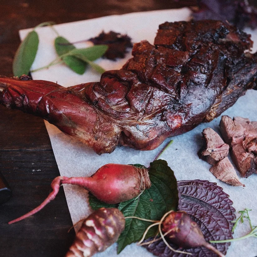 "Zelf heb ik het toegepast bij witte asperges met rosé. Soms hangen we een oven boven de BBQ, bij het maken van brisket en shortribs. Als je het schuifje openzet, krijgt het vlees een rooksmaak. Aan een asado cross hangen we soms de bokjes van een geitenhouderij uit Leusden. Die zijn in vier uur gaar, in tegenstelling tot lam en schaap dat minimaal zes tot acht uur duurt. Zielig? We eten geitenkaas, maar vergeten dat geitenbokjes geen enkele waarde hebben bij de productie. Die worden of direct vernietigd of gaan op transport naar Spanje. Voor het milieu kun je beter geit eten dan rund."