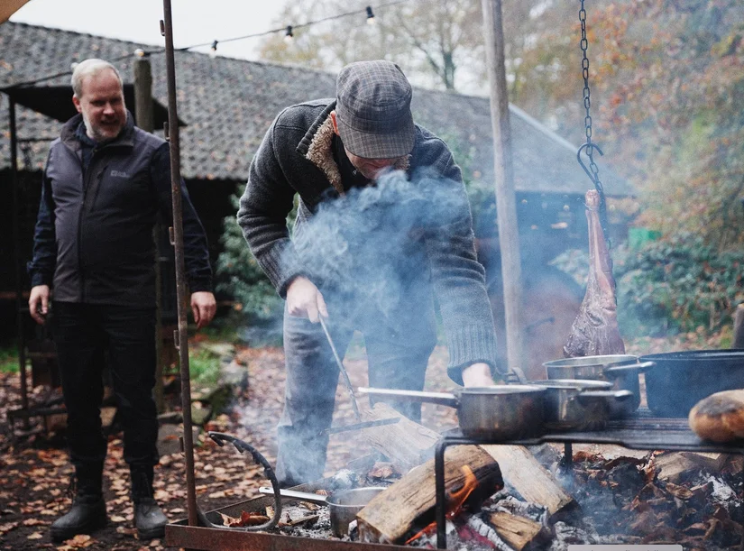 Op De Vuurplaats, zoals zijn eventlocatie heet, worden open fire experiences aangeboden. Gezelschappen van 25 tot 350 mensen ervaren in het groen hoe lekker geroosterde groenten zijn uit eigen tuin, net als Noordzee-vis en biologisch vlees van lokale leveranciers. "We verzorgen trouwerijen, maar ook teamuitjes als een BBQ-workshop. Met elkaar koken schept een band." Buiten koken is volgens de nieuwbakken Biltenaar dé manier om gerechten meer karakter te geven. "Zelfs de meest simpele producten krijgen een enorme smaakverdieping."