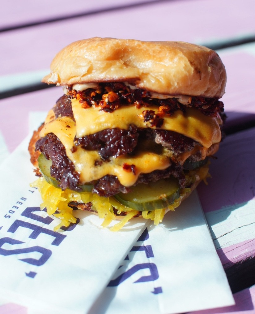 Zijn zoektocht naar de ultieme snack brengt hem overal. In Amsterdam zweert hij bij The Beef Chief, waar volgens hem de beste burgers van Europa (!) worden gebakken. “Tegen het culinaire aan, vooral de smashburger met kimchi. Die chef is altijd bezig om ze nóg beter te maken.” In Rotterdam gaat hij graag langs bij Stooges, een burgerzaak waar liefde voor het ambacht nog met een hoofdletter wordt geschreven. In Utrecht is hij vaak te vinden bij Pizza Marjolein of Cafetaria ten Beste, waar je een Turkse pizza met twee frikandellen erop krijgt. Klinkt gek, is geweldig.” En in Den Haag stopt hij steevast bij Classique Snacks by Fred voor een klassiek frietje en een broodje Dungelmann. “Soms is eenvoud gewoon perfectie.”
