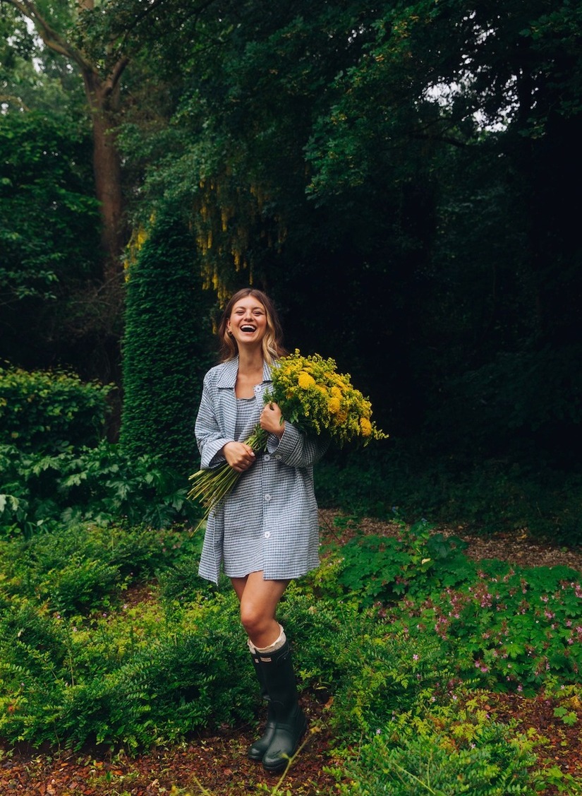 Je tafel mooi aankleden past bij een goede host zijn. Dus het verbaast niet dat ze een servieslijn met haar naam gelanceerd heeft: Pien’s Tables. De Engelse term tableware dekt de lading wat beter, want ook servetten en tafelkleden van de lijn kun je thuis op je eigen tafel leggen. “Al vijf jaar lang ben ik elke dag bezig met tafelaankleding. Ik weet wat ik fijn vind en wat het goed doet op foto’s, en had wel zin in een nieuw avontuur. De eerste collectie bestaat uit tafelkleden, placemats, servetten en platte en diepe borden. Ik heb ontworpen wat ik zelf miste, zoals grote tafelkleden voor een mooie prijs, in roze en paars en met polkadots, waar ik gek op ben. De borden zijn opvallend, maar simpel. Bijzonder én praktisch. Off-white met een paars randje, met de hand beschilderd. En ze kunnen gewoon in de vaatwasser.”