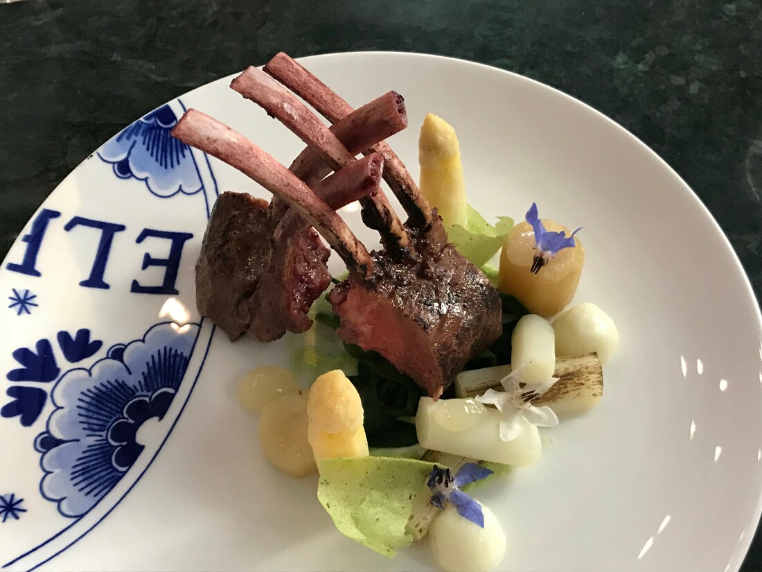 Het hoofdgerecht dat hierop volgt laat ook niets te wensen over. De uitvoering van een subliem gegaard lamsrack met aardappelen, lamsoor en – daar zijn ze weer – asperges verdient een triple A-status.
