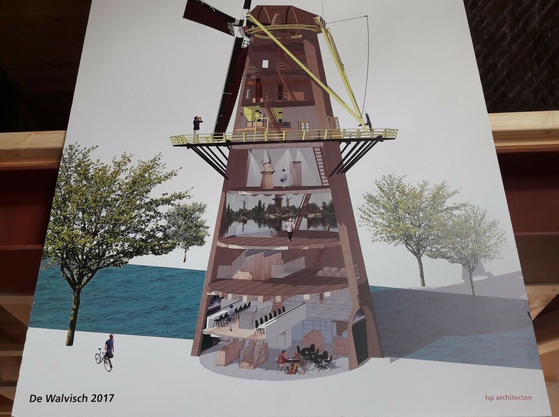 Het is de bedoeling dat alle molens uiteindelijk een transitie ondergaan. Door de vier bedrijven die zich rond de jaren ‘90 in De Walvisch vestigden, was de molen gevuld met allerlei soorten vloeren, verdiepingen en een wirwar aan wanden. “Je voelde de hele molen niet meer, dus bouwen wij hier samen met het jenevermuseum nu een museum en molenwinkel”, aldus Hugo.