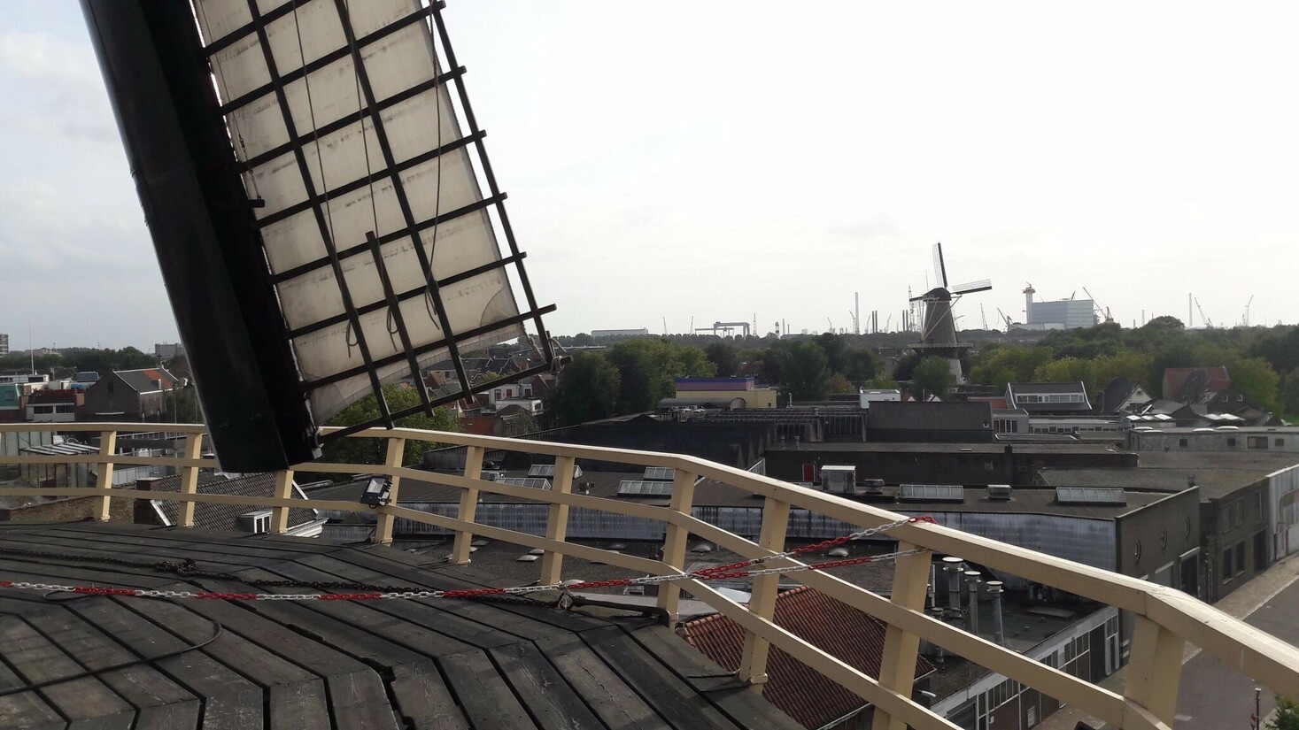 Startpunt van onze molentour is molen De Kameel. Eén van de eerste molens uit het jenevertijdperk en daarom wat kleiner van stuk. Paul (pr-man bij De Schiedamse Molens) neemt het woord: “De Kameel is één van de weinige molens met een grot. Die grot zorgde ervoor dat boten een gedeelte van de molen in konden varen en op die manier konden laden en lossen.”