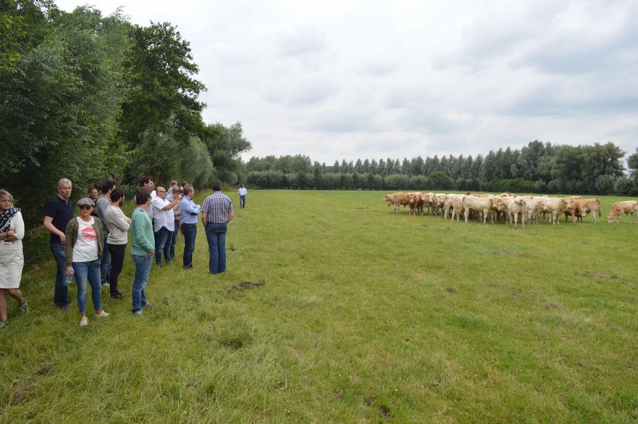 Bij aankomst worden we hartelijk begroet door boer Wouter, die nog even snel zijn tractor wegrijdt. Hij vertelt over de omgeving en over zijn onderneming. “De koeien die we hier houden noemen we Palmesteyn Boeuf Blonde. Dit is een echt vleesras. Dat is ook wel te zien aan de enorme spieren van het dier. De basis hiervan is het Franse ras Blonde d’Aquitaine.” Naast de boerderij in Deil zijn er nog twee plekken waar de familie deze koeien houdt: “We hebben 1.000 koeien in de bossen van de Bohemen in Tsjechië, waar ze ongestoord kunnen grazen en we hebben nog koeien in Twente.”