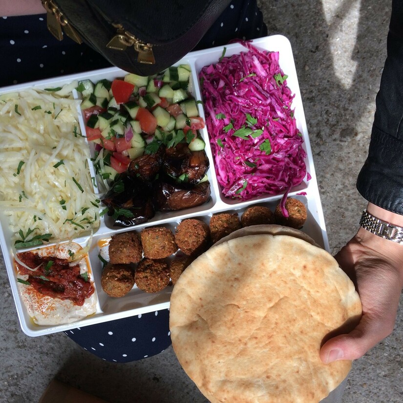 L’as du Falafel is een hele bekende. Ze zitten in het hart van het Joodse kwartier in de hippe wijk Marais. In deze buurt zijn veel goede falafelzaken te vinden, maar het koosjere restaurant L’as du Falafel is verreweg de populairste. Het is hier altijd druk en zelfs als het regent staat men hier braaf in de rij te watertanden, wachtend op het beroemde broodje falafel. En terecht. Het wachten wordt beloond met een vederzachte warme pita, royaal gevuld met heerlijk gekruide falafel, knapperige rode en witte kool, frisse tomaat en komkommersalade, perfect gegrilde en heerlijk geoliede aubergine, romige humus met pittige harissa en nootachtig tahini en verse peterselie. En dat voor de zachte prijs van 6 euro. De pita’s worden met heel veel behendigheid op fast-foodtempo klaargemaakt. Uiteraard heeft L’as du Falafel ook andere opties op haar menu. Denk vooral aan verschillende shoarma- en vleesschotels. Er is binnen in de zaak zitruimte, maar leuker is om je pita to-go te halen bij de gezellige en chaotische counter aan de straatkant en hem al lopend door de Marais uit het vuistje op te smikkelen. Gesloten op zaterdagen vanwege Sjabbat!