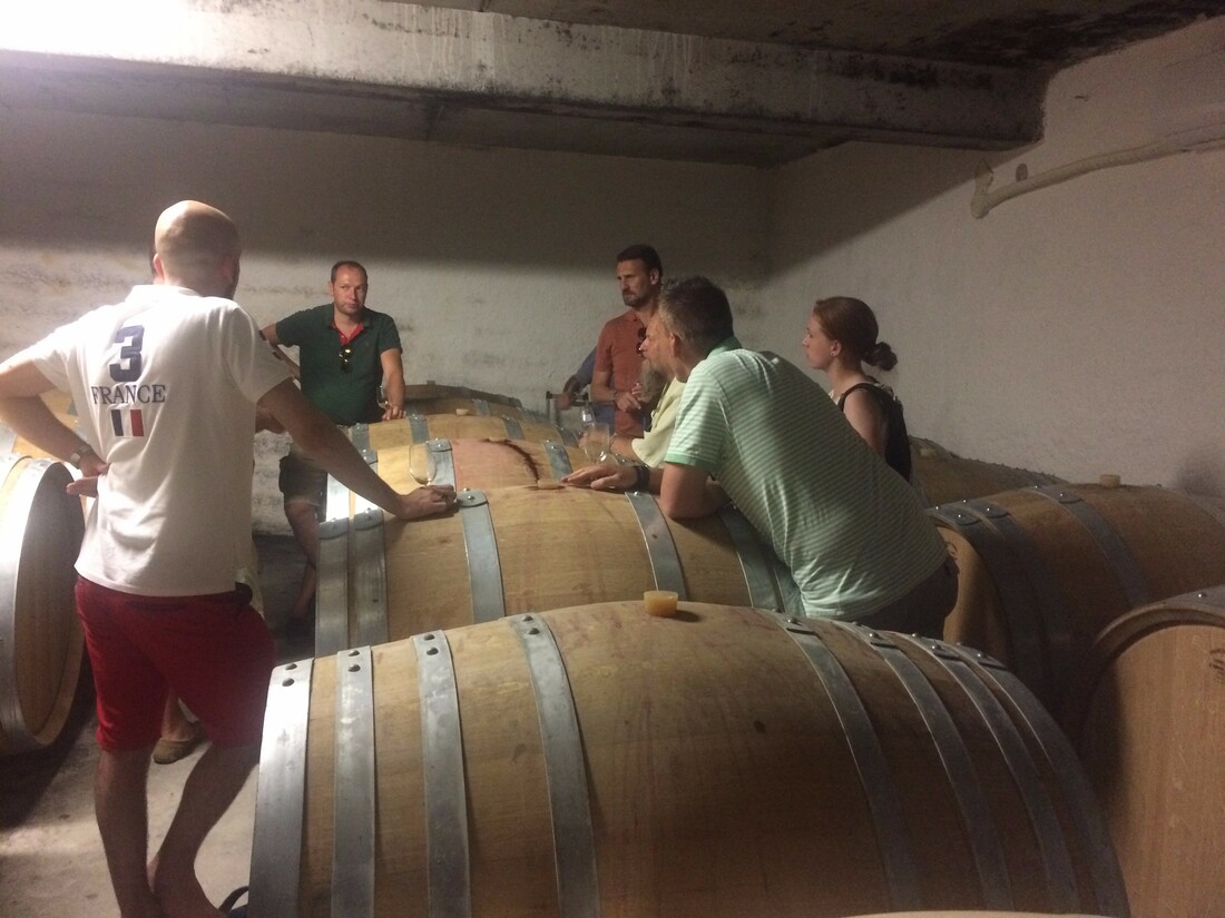 James, een cynische Brit met bijpassende gortdroge humor, wordt bijgestaan door twee doorgewinterde wijnmakers: verlegen Fransman Laurent Girault en Australiër op leeftijd Richard Osborne. Laatstgenoemde heeft een verbazingwekkend pallet, waarmee hij wijnen van jaren geleden feilloos met de nieuwe oogst weet te vergelijken. Hij mag er graag over praten. Niet dat we het verstaan overigens. “Laurent denkt dat hij geen Engels kan, maar spreekt het perfect en Richard denkt dat ‘ie het wel kan, maar geen mens die weet waar hij het over heeft”, aldus James.