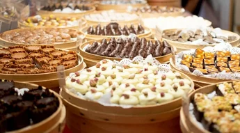 Zeer aantrekkelijk is de grote toonbank vol bonbons, bouchées en truffels. Je kunt kiezen uit 39 verschillende soorten en maten, in wit, puur en melk. De een nog aanlokkelijker dan de ander. Je kunt ter plekke een doosje laten samenstellen voor jezelf, maar leuker is het misschien om het iemand anders cadeau te doen. Voor een ons bonbons betaal je € 4,95. Elke doosje wordt vergezeld van een bijsluiter waarop de diverse smaken worden weergegeven, zodat de fijnproever niet voor verrassingen komt te staan. Zo kun je zomaar je tanden zetten in een bonbon met rode pepervulling, of een chocolaatje gevuld met moutwijn.