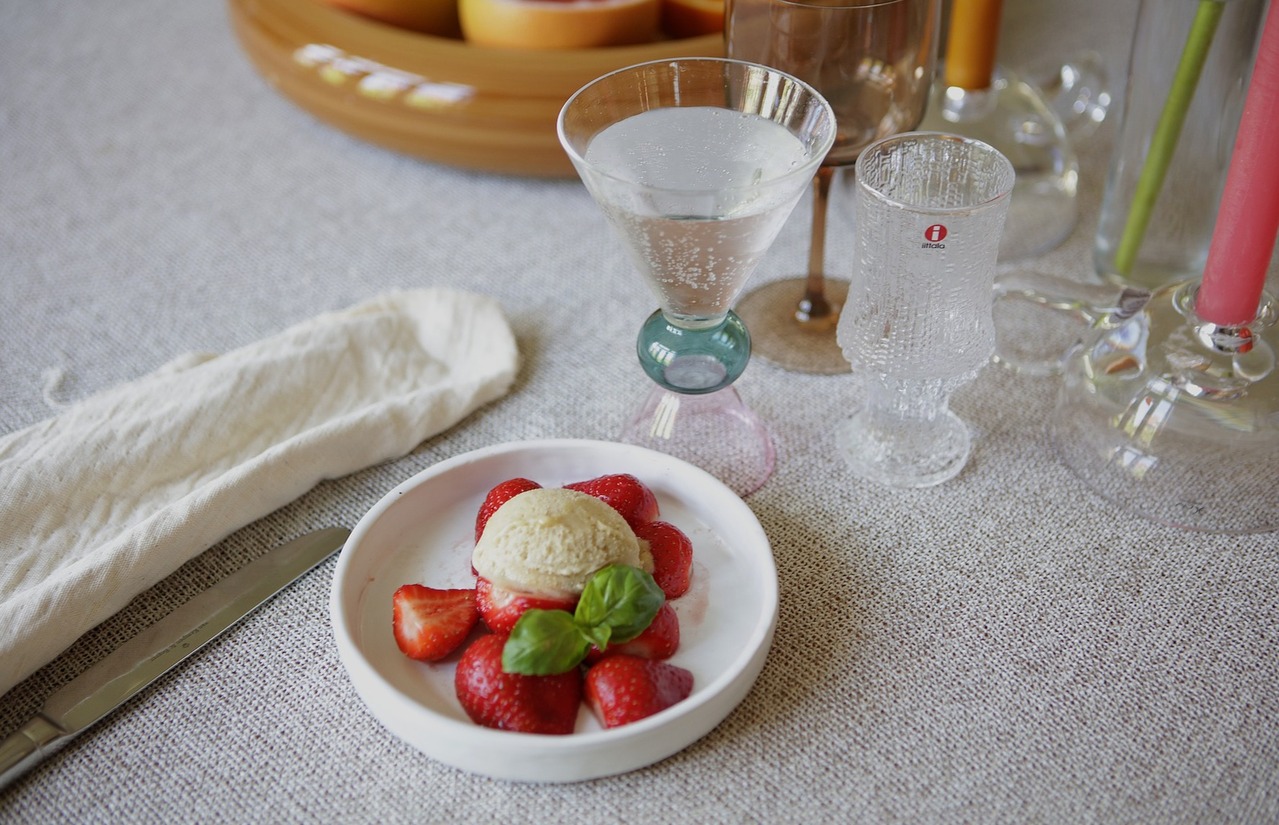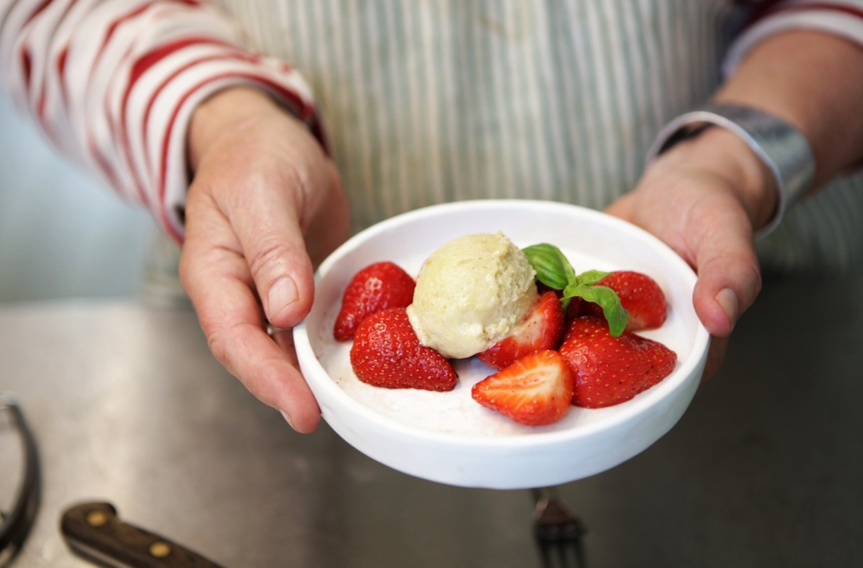 Recept 2: Rabarberijs met gemarineerde aardbeien