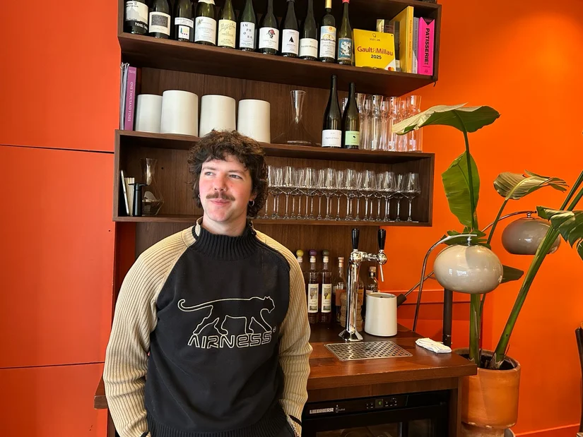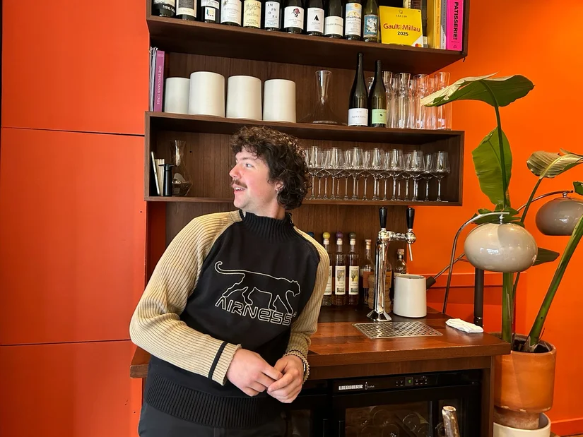 “Daar heb ik alles geleerd. En dat bedoel ik vrij letterlijk, want bij Kiem doe ik ook alles - behalve koken.” Behalve wijn adviseren en schenken, koopt Kamiel ook de wijn in, beheert de wijnkaart, werkt op de vloer en pakt aan waar het nodig is: van de wc schoonmaken tot de afwas doen.