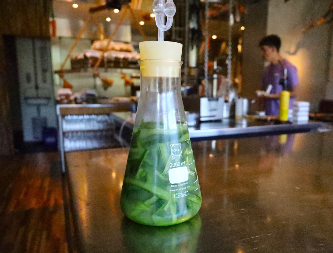 Als belangrijkste dranktrend in de horeca wijst Joey naar alcoholvrij. "Dat bieden we onze gasten uiteraard ook en dan moet het wel iets bijzonders zijn. We hebben een sappenarrangement en die sappen maak ik zelf. Ook daarbij werken we circulair. Dus het is altijd gemaakt van iets dat anders vaak weggegooid wordt. Bijvoorbeeld de stam en schillen van een ananas. Daar maak je heerlijke tepache van, een Mexicaanse drank. Of een kombucha van wat overblijft van stoofperen, of een sap van mango of komkommer. Ik kan nog wel even doorgaan." Joey deed dit al bij Amarone, maar pas hier liep het echt ‘uit de hand'. "Het is spelen met smaken en ingrediënten. Als je dat goed doet, dan haal je het meeste uit het product zelf en heeft het verder weinig nodig."