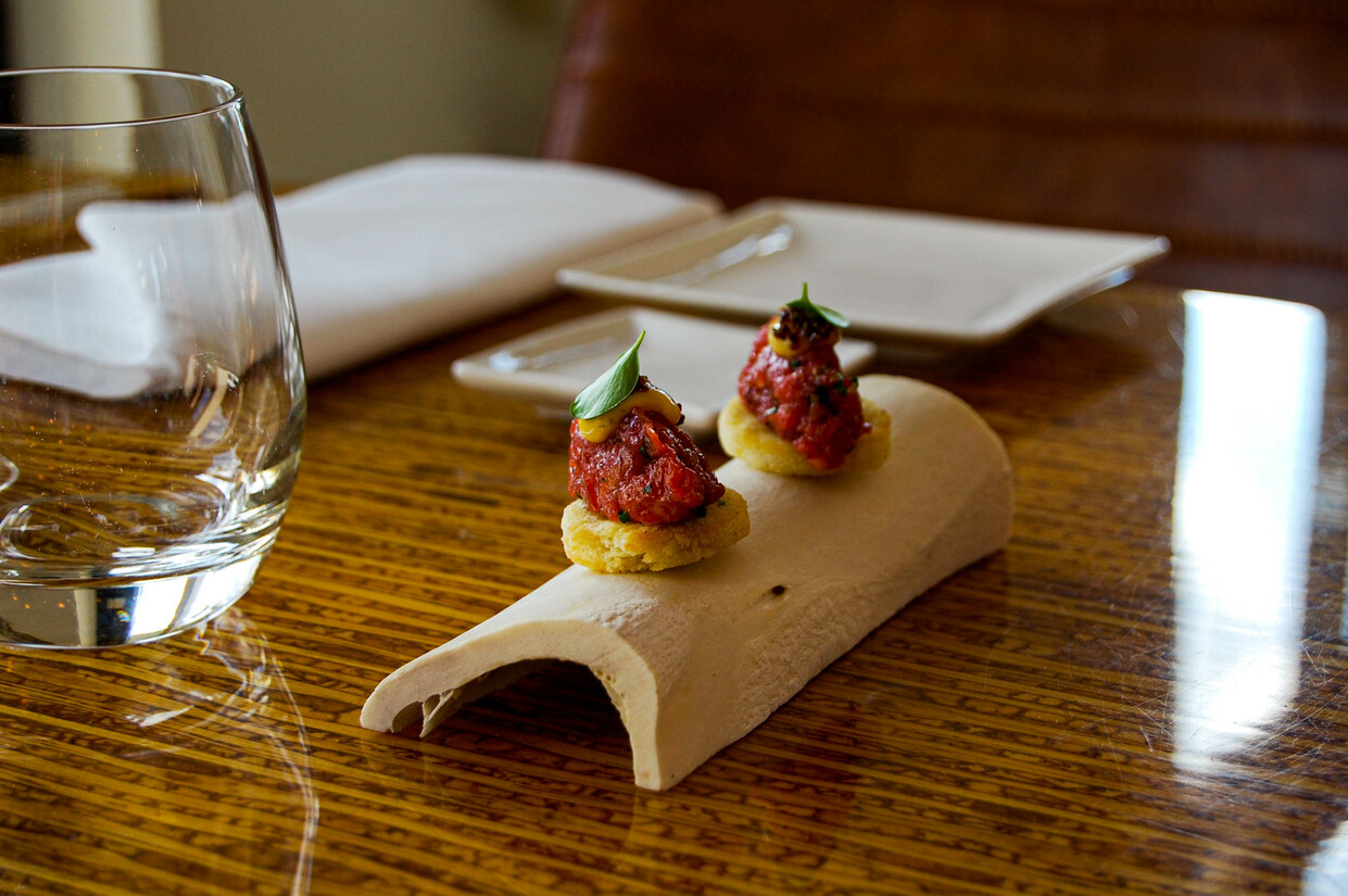 Sinds het vertrek van de voormalige chef-kok ziet de menukaart er niet meer hetzelfde uit. Nog altijd ligt de focus op Franse gerechten, maar de signature-dishes van Terry, zoals bijvoorbeeld de zachtgegaarde zalm met kerrie ijs, zijn logischerwijs niet langer op de kaart te vinden. “Dat serveerde hij. Ik kook net weer anders dan hoe hij dat doet”, legt Frank van Rijsbergen uit, de nieuwe chef-kok en mede-eigenaar van Allure. De kaart staat nu vol gerechten die hij zelf bij Allure vindt passen en Frank weet er altijd een spannende wijn-spijs combinatie van te maken. De chefs table maakt wel nog altijd deel uit van de zaak.