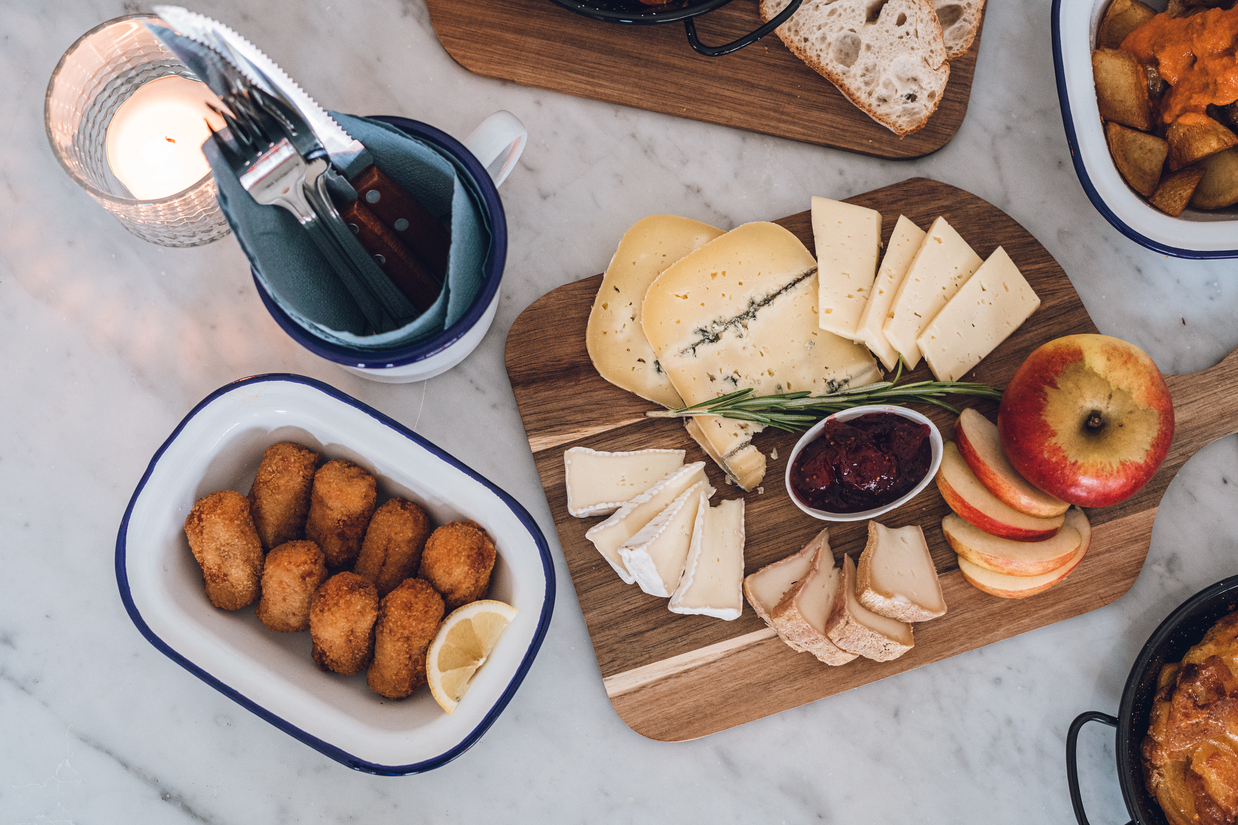 Als mensen van de middag tot de avond blijven plakken, moet er ook eten komen. Wouter: "We willen de kaart behapbaar houden. We gaan toewerken naar drie of vier hoofdgerechten en verder heel de dag hapjes." Op de kaart kleine, maar vullende gerechtjes met de keuze uit vis, vlees en vegetarisch. Chorizo a la Sidra, oftewel chorizo in cider, friet met stoofvlees (ook vegan verkrijgbaar), camembert uit de oven, croquetas de jamón en pimientos padrón: slechts een selectie van de kaart. Gerechtjes met hun oorsprong in landen waar cider veel gedronken wordt. "Naast dat je hier ook lekker kunt eten, willen we ook nog dingen gaan organiseren die horen bij de cidercultuur. In januari heb je bijvoorbeeld in Engeland wassail, een ciderritueel waarbij boze geesten worden verjaagd uit de boomgaard en de bomen worden gezegend met cider. In Noord-Spanje heb je txotx, waarbij je met een keldermeester de nieuwe ciders proeft uit het vat. We moeten dat dan op een iets andere manier insteken, maar vinden het wel leuk om hier iets mee te doen." Ook komen er (open) ciderproeverijen en willen ze dingen zoals de opening van het haring- of mosselseizoen op hun eigen manier vieren, waarbij cider uiteraard een grote rol speelt. Daarnaast is De Ciderbar af te huren voor borrels. Wouter: "Wat ik vooral heel belangrijk vind, is dat De Ciderbar een relaxte plek is waar je gezellig zit, warm ontvangen wordt en waar je leuk een praatje met iedereen kunt maken."