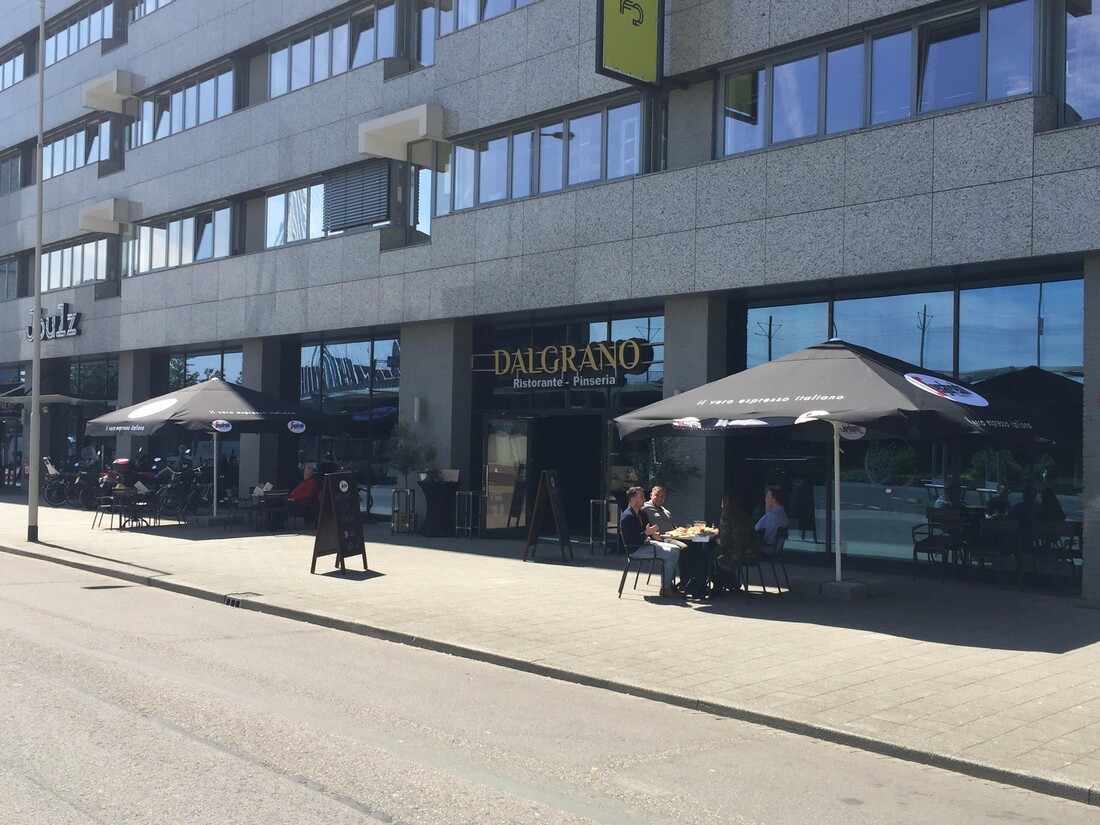 Dalgrano Ristorante Pinseria is te vinden op Zalmstraat 3. De glazen entree met daarboven de verlichte gouden letters laten je het restaurant gemakkelijk vinden. Op de brede stoep van de Zalmstraat staan wat terrastafeltjes onder een grote parasol. Een prima plek om je pinsaatje of natuurlijk een van de andere traditionele Italiaanse gerechten te eten.
