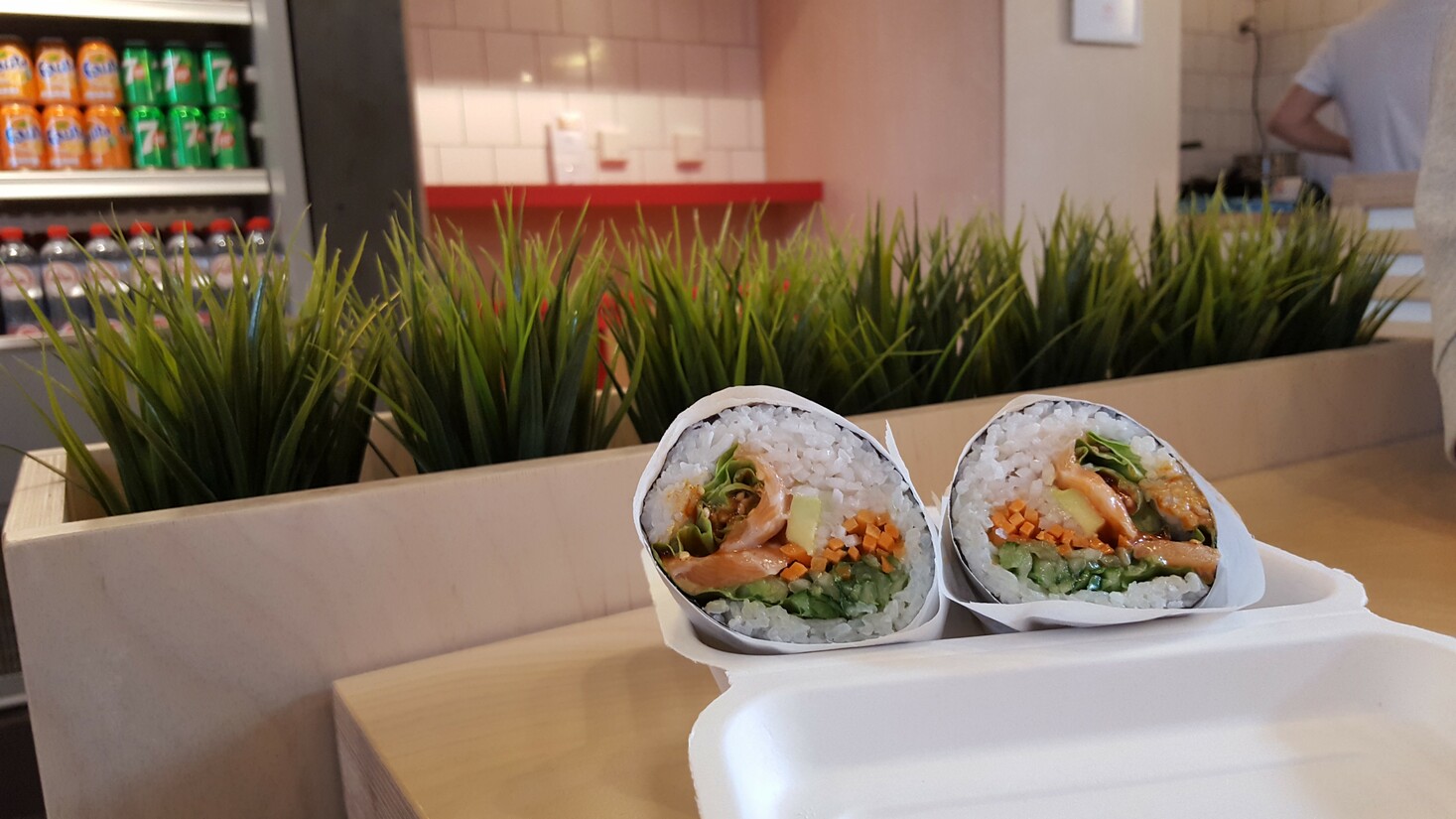 In California is de sushiburrito één van de hotste items die je op dit moment kunt krijgen. Supersauer haalt de trend nu naar Nederland. Hun sushiburrito ook wel kimbap genoemd: een wrap met al het lekkers uit de Koreaanse keuken en een flinke lading verse groente. De sushiburrito wordt gerold in zeewier en bevat op smaak gemaakte rijst die een tempratuur heeft van precies 24 graden. Voor de vulling binnen de burrito kun je kiezen uit verschillende toppings zoals zalm, tonijn, tempura garnalen, Koreaanse bulgogi, een vegetarische versie met tofu of zelfs met kimchi erin. Verder zijn er verschillende dressings te krijgen en wordt de burrito ook goed gevuld met groentes. Heel wat anders dan een sushiroll dus!