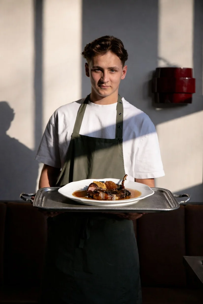 Op de kaart staan bijvoorbeeld een oester met kalfstartaar, oestermayonaise en ingelegd mosterdzaad, langoustine met burrata, tamarillo, bleekselderij en kreeftenolie, of een pork tomahawk met toum, appelmostarda [gekonfijte appels in siroop met mosterdsmaak, red.] en pittige mosterd.
