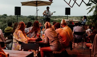 Het café is gelegen in de duinen en binnen kun je de zee al zien liggen. Met de locatie hebben ze veel geluk gehad en deze heeft ook de doorslag gegeven. “Anders waren wij denk ik alle drie niet in Nederland blijven hangen.” Volgens Robin de ‘perfecte match’. Daarnaast geeft hij aan dat het leuk is dat ze in de duinen zitten, omdat “het ook verbinding heeft met de natuur”.