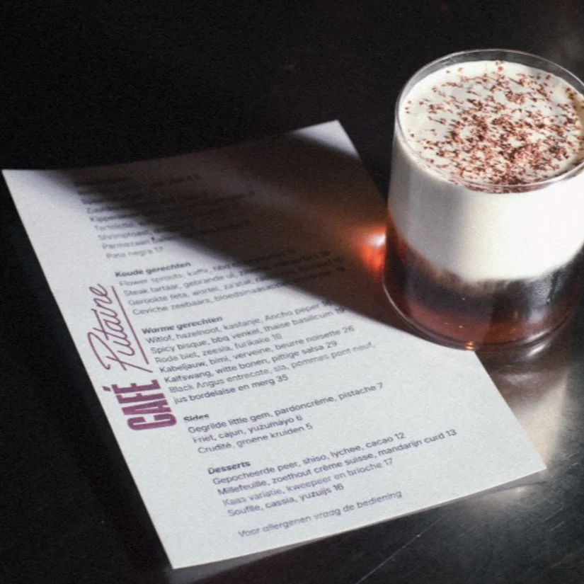 De menukaart en drankenkaart zijn af, daarover zo meer, en het is nu een kwestie van binnenlopen en gewoon een apéritief bestellen of gaan borrelen. Er is ruimte voor walk-ins aan de lange bar en je kunt bij het reserveren aangeven of je komt lunchen of dineren in het ‘restaurant’ of komt borrelen of snacken in het ‘café’.