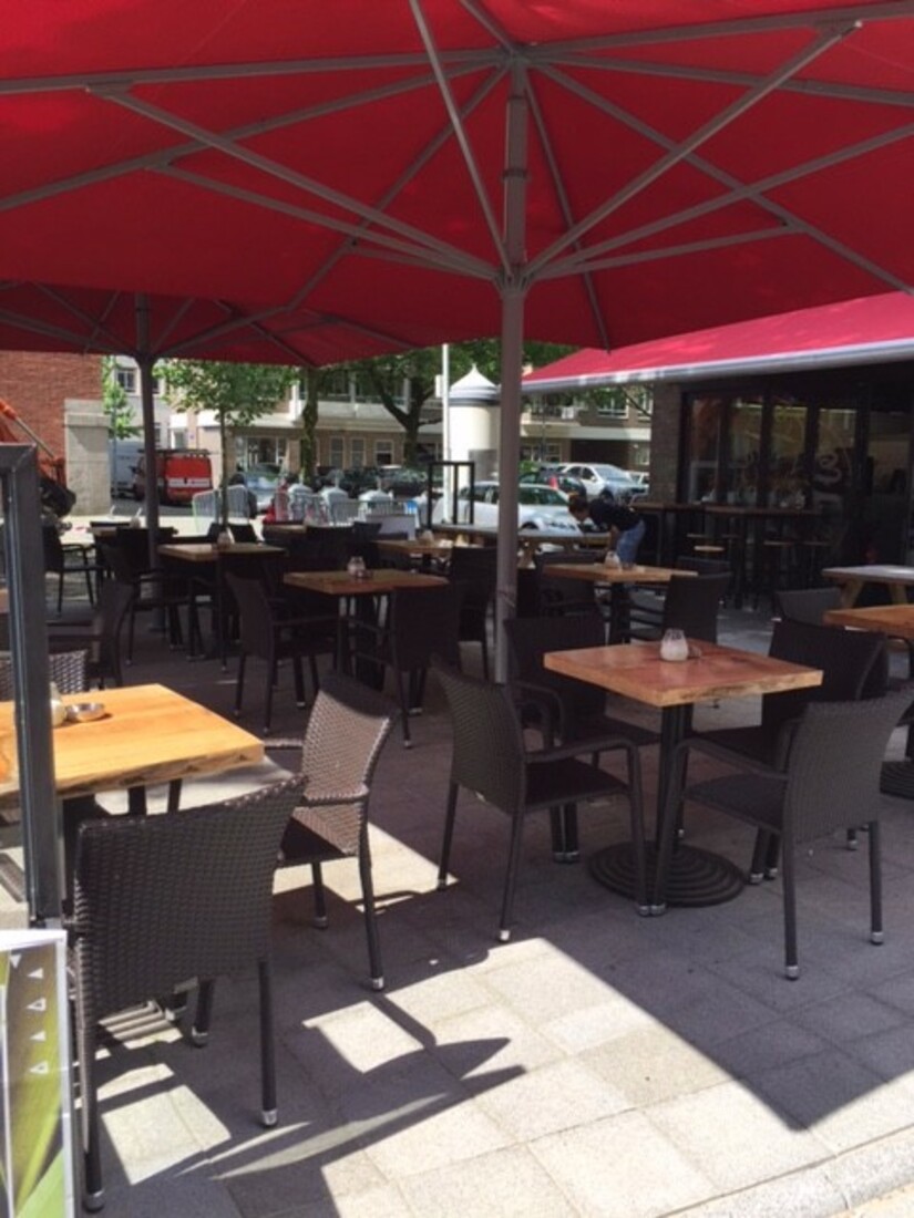Kevin is erg blij met zijn nieuwe terras: ‘Nu is de witte tent eindelijk weg en kunnen mensen heerlijk buiten op ons terras genieten.’ Het terras is al open, alleen de parasols moeten nog aan elkaar worden verbonden en komen er aardappelplantjes in de plantenbakken. Vlakbij het terras is de gemeente nog bezig met de weg bestraten. Hier worden ook bankjes neergezet. ‘Als ons terras vol is, kunnen mensen hun patatje ook meenemen en op een bankje naast het terras plaatsnemen’, aldus Kevin. Helaas ligt het project even stil. De bomen die naast het terras staan zorgen voor oponthoud. Doordat deze bomen zo snel groeien, komen de wortelen omhoog en is het niet mogelijk om de weg te bestraten zonder de bomen te beschadigen. Kevin hoopt dat er snel een oplossing voor komt. Hij ondervindt veel hinder van de bomen. ‘In de zomer zitten er veel vogels die de mensen en het terras onderschijten en in de winter heb ik veel troep die ik moet opruimen van deze bomen.’