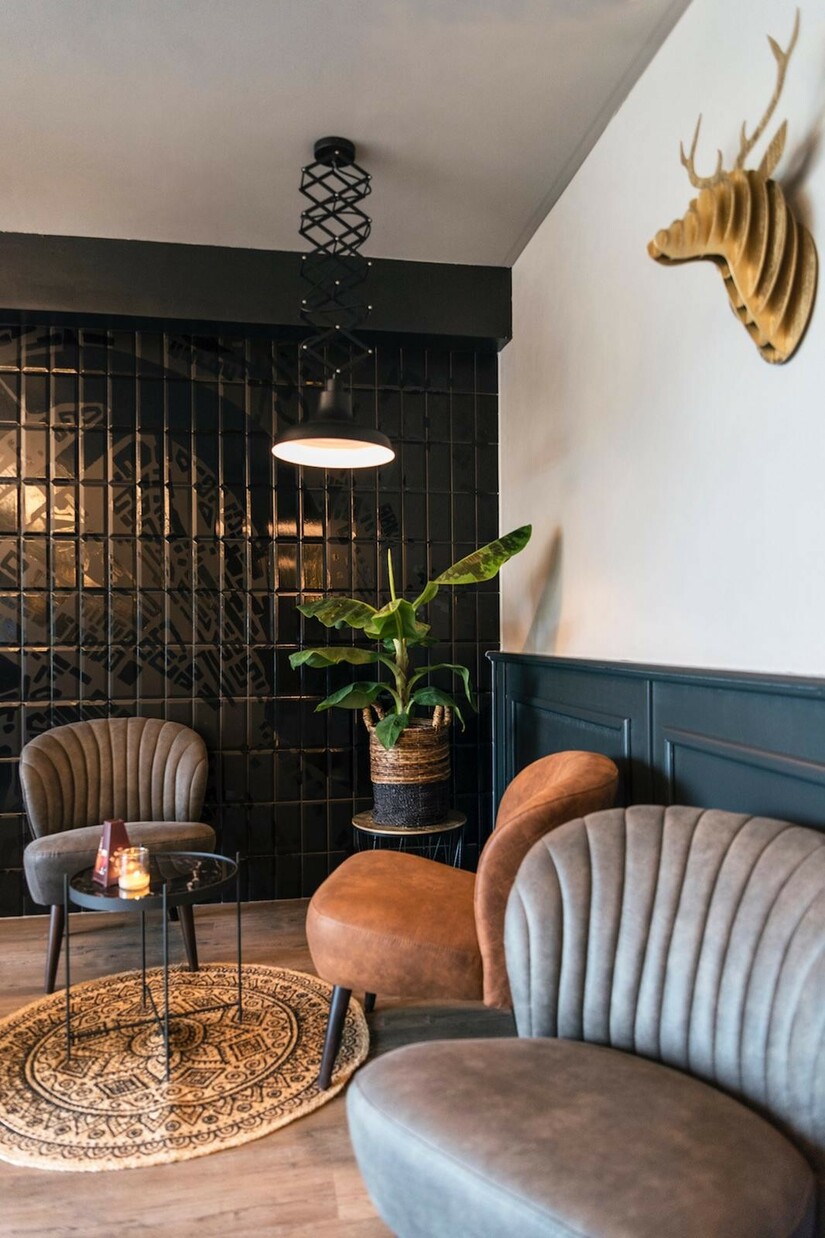De ruimte bestaat uit verschillende delen en is modern ingericht met velvet stoelen, een lange bank, stalen deuren en een prominente bar. "Ik wil een bekend gezicht van de zaak zijn. Mensen komen bij mij thuis, zo zie ik het. Een verlengde huiskamer, die sfeer moet het uitstralen", licht Niels toe. Zo zit je in de hoek met stoelen wat rustiger en is het aan de bar weer een stuk informeler. Ook is er een aparte zaal voor bijvoorbeeld private dining en borrels, welke uiteraard ook gewoon aan de bar kunnen worden gehouden.