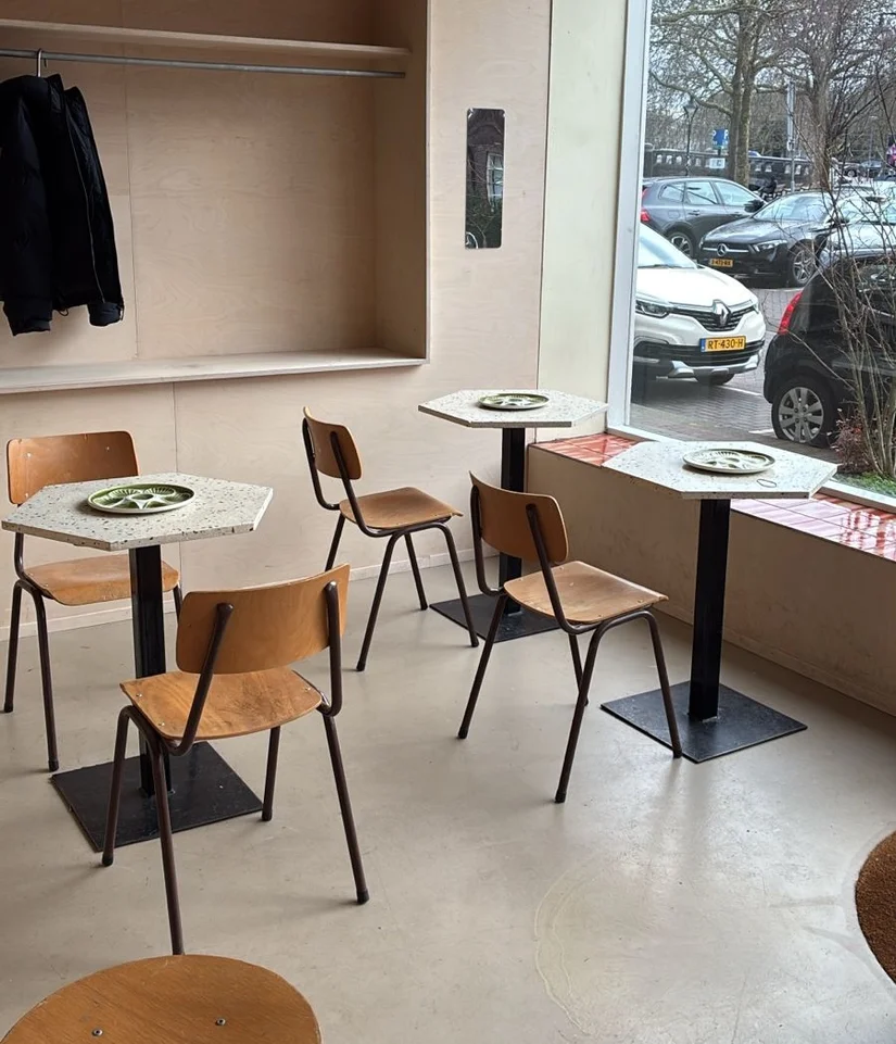 De inrichting weerspiegelt de smaak van de twee ondernemers. Modern, maar met een mix van oudere elementen. Oude schoolstoeltjes, een zelfgebouwde bar en Franse oesterbordjes zorgen samen voor een warme sfeer.