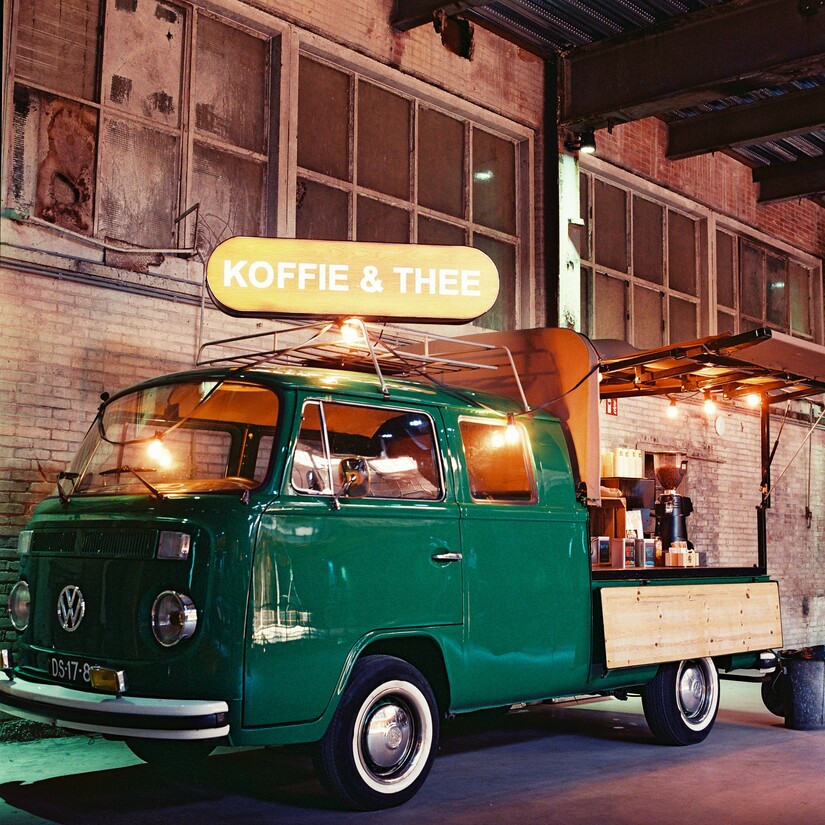 Vanuit de Volkswagen T2 Doka - aka de Grasshopper - zal Ketelbinkie de festivalbezoekers voorzien van Ketelbinkie koffie en Natte Thee. "De koffiebonen kopen we direct in bij de boer en ze worden in eigen beheer gebrand, zodat we mensen kunnen laten genieten van eerlijke en heerlijke espressokoffie. De Natte Thee is onze theelijn en is met zijn knipoog naar het Rotterdamse spraakgebrek goed op z'n plek op Rotterdamse Kost." De zoetigheden worden overgelaten aan Koekela, die ook met een eigen stand op het terrein staan. "Eenmaal op locatie plaatsen we de espressomachine op de pick-up, luifels open en klaar! We reizen heel wat af om koffie te serveren, maar de mensen van een bakkie voorzien en laten genieten van kwaliteit in eigen stad blijft toch het mooist." Ze doen ook ijskoffies, wat mooi past bij de weervoorspellingen.
