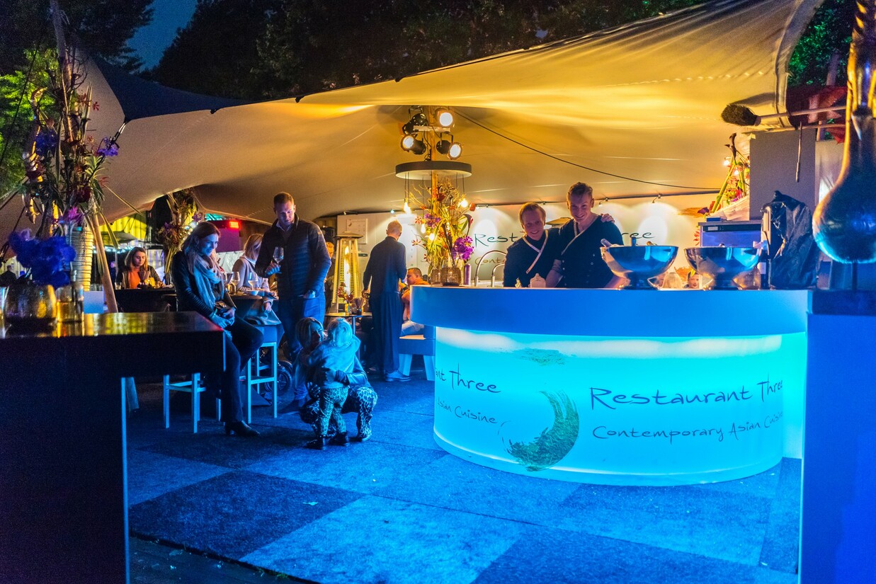 Ook Restaurant Three is dit jaar weer aanwezig met de contemporary Asian cuisine. Chef Merijn Sips (links op de foto) laat ons weten dat we onder andere hokkai, gyoza's en kip van de robata grill kunnen verwachten. Voor de echte zoetekauwen is er een dessert met witte chocolade en passievrucht.