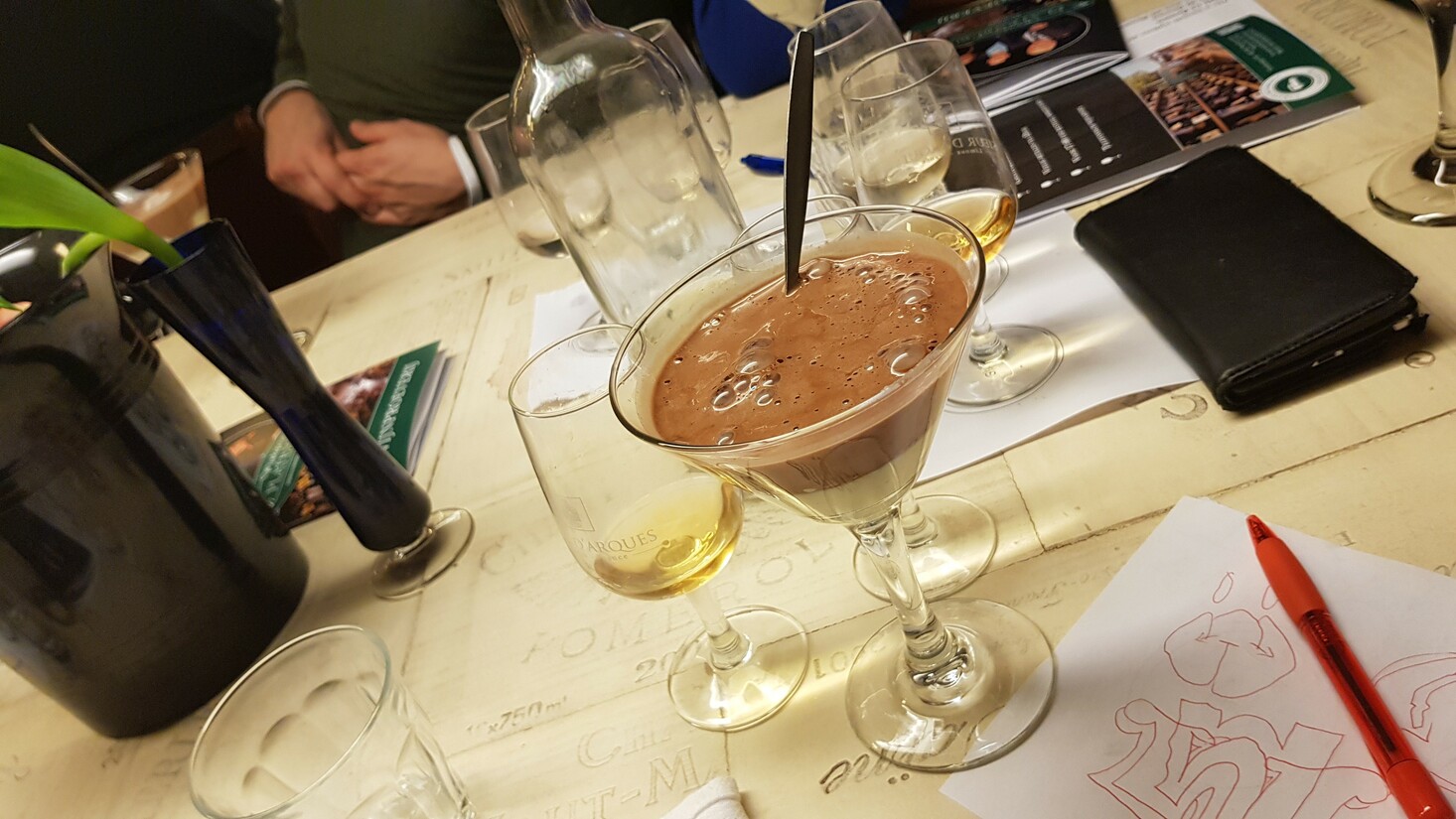 Terwijl ik de laatste hap van de chocomousse met dingen erin wegspoel met de superzoete Pass the cookies Verduzzo unoaked, bedenk ik me dat het natuurlijk logisch is dat deze mierzoete wijn mijn favoriet is, want ik ben Tim “wijvendrankies” Beumers. Ik veeg mijn mond af en wens mijn tijdelijke tafelvrienden een fijne voortzetting, want fijne avond voelt niet luxe genoeg in deze setting.
