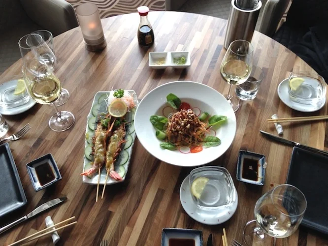 De Kop van Zuid heeft er een mooie eetplek bij: HMB Restaurant. Schitterend uitzicht op Erasmusbrug, lekkere gerechten en fraaie wijnen. De Buik at proef.