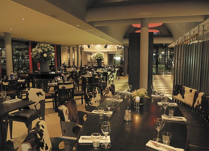 De zaak is opgedeeld in verschillende, comfortabele zithoeken. Bovendien wordt er voor genoeg entertainment in de zaak gezorgd en kan het zomaar dat je een goochelaar aan tafel krijgt.