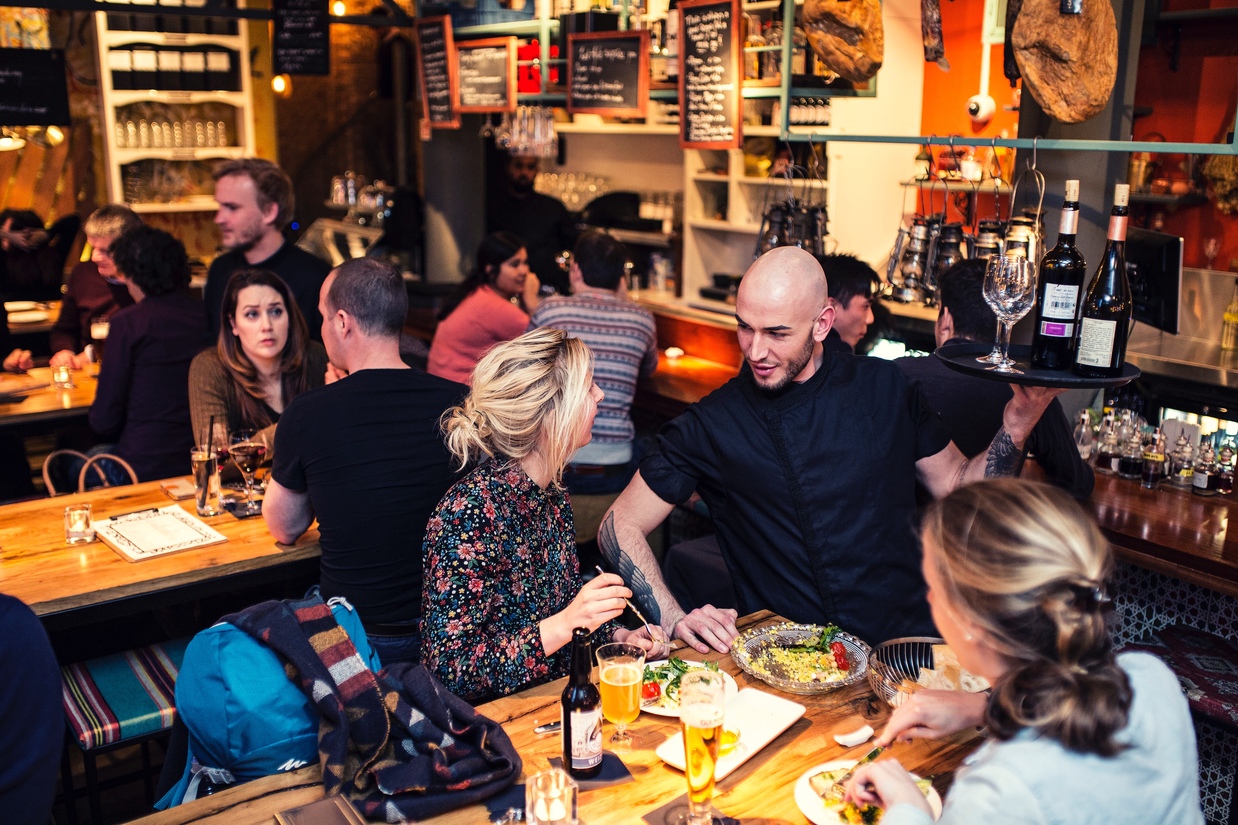 Geen traditioneel eikenhout bij Ayla, maar wilde graffiti en aardse kleuren. Toch waan je je aan de Mediterranee, dat kom zowel door het interieur als door de menukaart. Op het Kruisplein kun je bij Ayla bijna de hele dag door terecht. Van de vroege lunch via een uitgebreid diner tot een late night snack, dit alles altijd “to share” en met een verrassende twist.