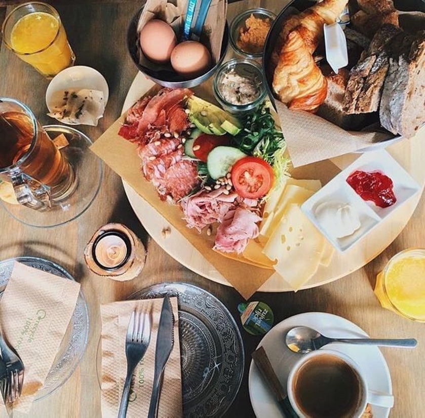 Mooi gedekte tafels, kunstig gevouwen servetten en etagères vol met lekkers. Verschillende soorten brood, croissants, beleg, verse OJ, (gekookte) eieren… Hier kun je dit paasweekend genieten van een brunch.